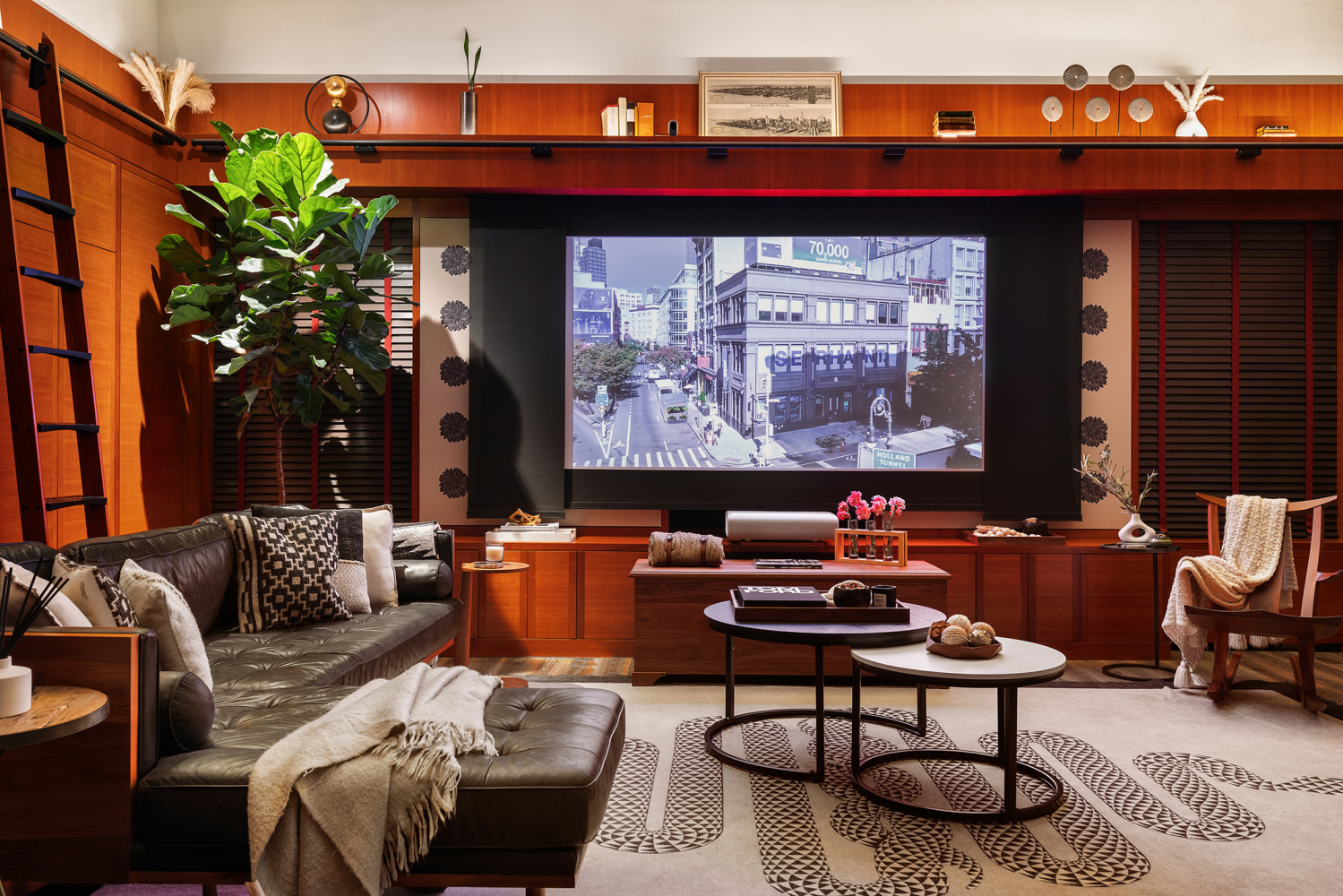 Designed for those who love to entertain, the home features a sophisticated automated home theater system with immersive surround sound, a generous drop-down 100" HD projection screen, and a smart voice control interface. Concealed speakers are seamlessly integrated into the design, preserving the loft's clean aesthetic. Smart-home conveniences abound, including remote keyless building and apartment access, a robust security system, climate control, and voice-activated blackout shades. The stunning hardwood cabinetry provides an impressive 50 linear feet of storage, while the custom bar and 300-bottle Thermador smart wine fridge add the perfect touch of luxury.